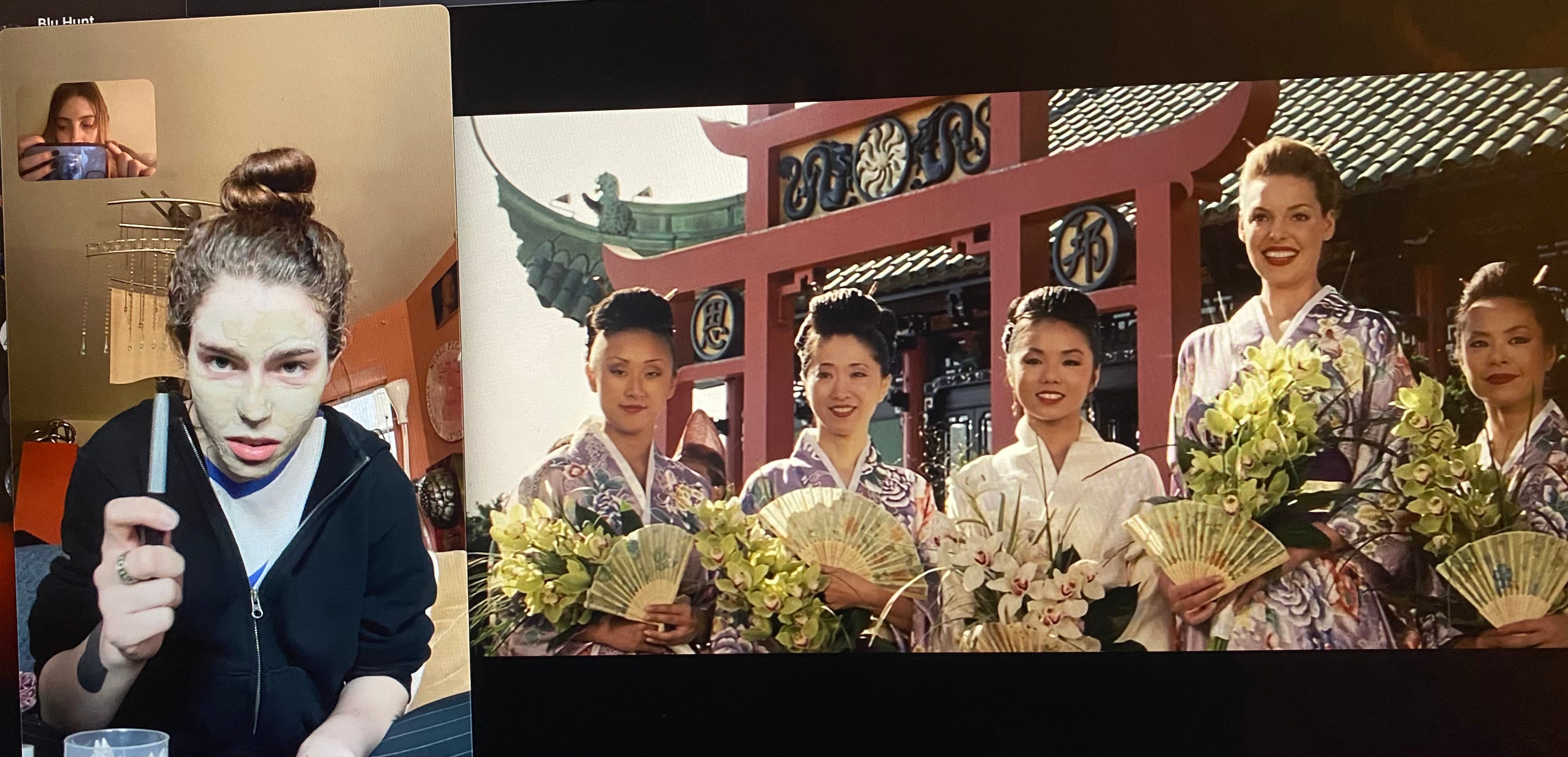 So there’s a montage of all her dresses and he takes pics and I think there are some flashbacks of the weddings and it's like mildly racist.